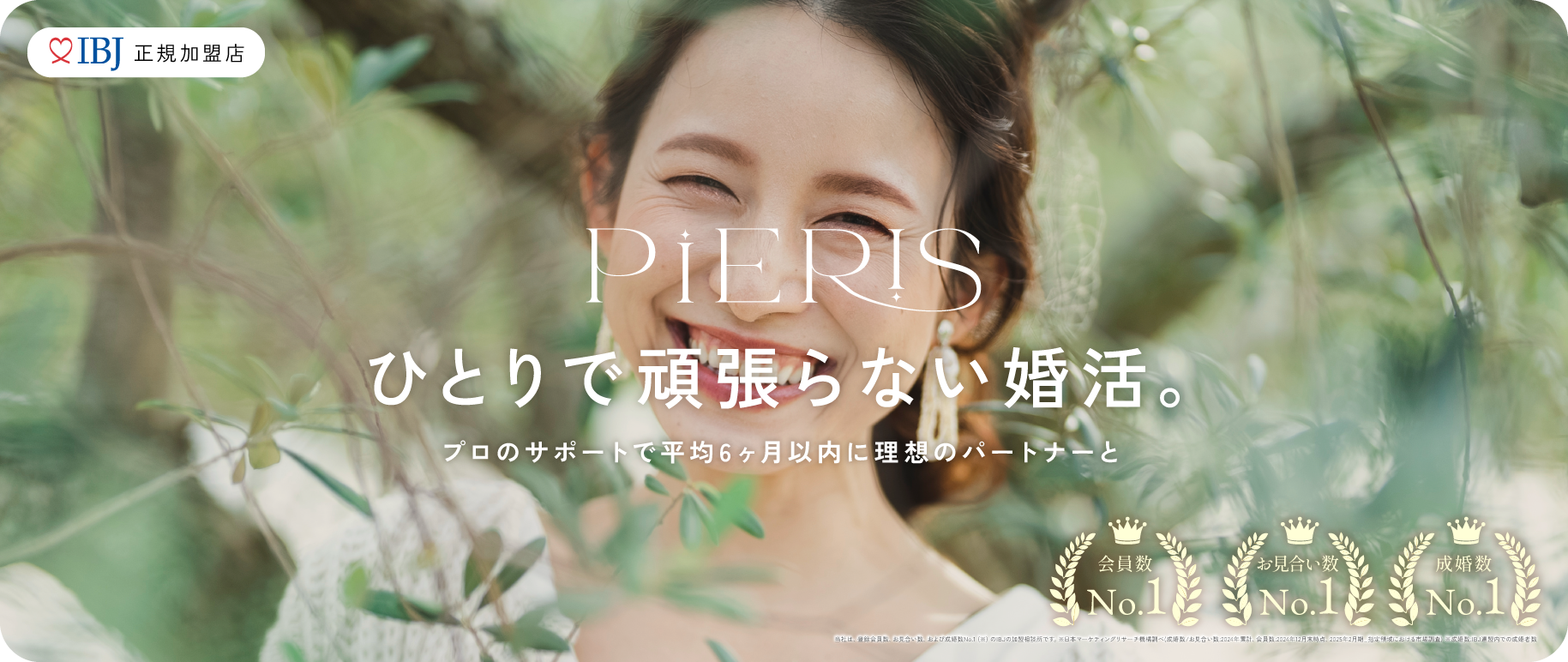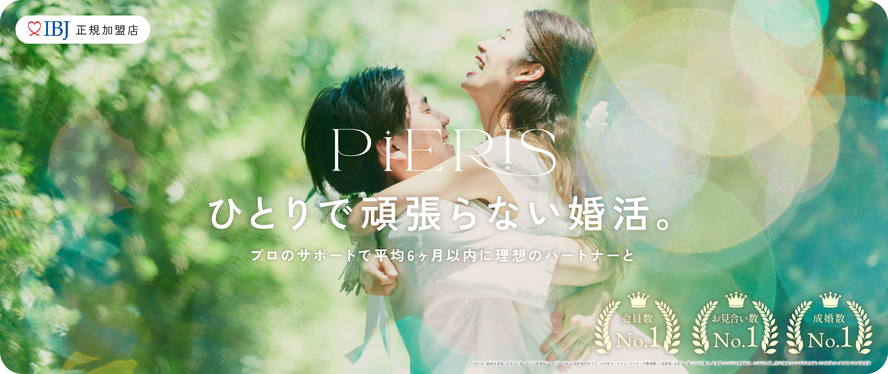婚活をきっかけに自分を変えたい。美しくなりたい。そんな希望を叶えます。ピエリスは「内面・外見・行動」の三位一体サポート。「出会う前の準備」も「出会ってからの磨き」も全て一括支援。心と外見の両面から自信を育てるというコンセプト。