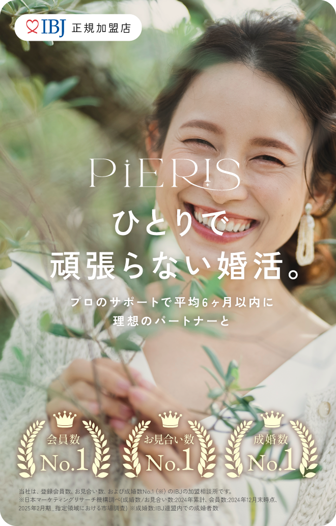 婚活をあなたのペースでピエリスはオンライン完全対応の婚活サロンです。ご相談からお見合い、そしてデートのはじまりまで、すべてをZoomなどのオンラインツールで完結できます。お仕事やご家庭でお忙しい方、遠方にお住まいの方も、場所や時間にとらわれず、ご自身のペースで婚活を進めていただけます。「会う前にまず話してみたい」そんなお気持ちにも、しっかりと寄り添える環境をご用意しています。